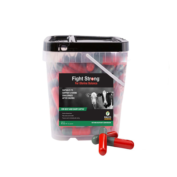 Fight Strong Uterine Balance Capsules were developed to help beef and dairy cattle overcome uterine challenges after calving and to prepare for rebreeding. Capsules provide beneficial bacteria for rapid recovery of a healthy uterine environment. Insert two capsules into uterus 12 - 24 hours after calving. May be repeated for 2 additional days if needed.