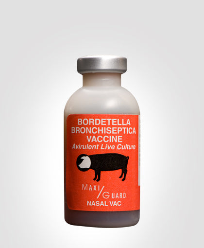 Maxi/Guard Nasal Vac is an avirulent live culture Bordetella bronchiseptica vaccine for the prevention of respiratory disease in baby pigs. Maxi/Guard Nasal Vac features include one dose intranasal administration , providing benefits of lowere labor intensity, less stress ( no needles) and lower costs. Nasal Vac is recognized by both private and corporate swine production facilities as a valuable disease preventative. Dosage: ½ ml into each nostril of piglets at one to three days of age. Packaged in 30 does bottles (nasal tips included).