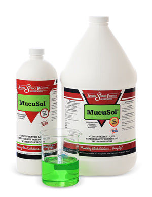 MucuSol is a liquid product developed for use in the drinking water of your poultry and swine populations as an aid in reducing respiratory congestion from mucus (phlegm). In houses with lots of dust and gas and poor quality air, animals can develop a dry cough, which is not productive – meaning it irritates the respiratory tract further instead of dislodging phlegm and expelling the irritant. MucuSol is a stable water-miscible syrup that delivers more phlegm-loosening power to eliminate the congestion during respiratory problems. MucuSol contains the richest concentration of water-soluble guaifenesin, the most recognized expectorant for animal use. The potent expectorant increases mucus volume and thins phlegm in the airway. By pulling water into the respiratory tract, MucuSol lubricates and stimulates the flow of secretions, allowing cilia to carry irritants up and generating a hearty cough to send them out.  Mix 1 liter in each 128 gallons of drinking water (485 liters). Prepare fresh solution daily. Repeat for 3-4 days or as necessary.